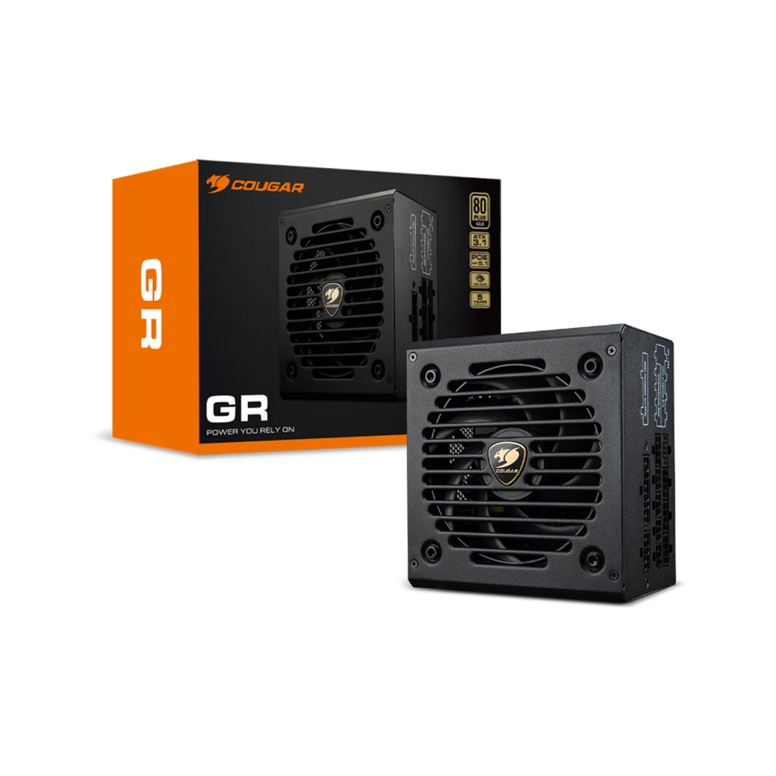 Полное наименование (каз) Қуат көзі, Cougar, GR 850, 850W, ATX 3.1, APFC, GOLD, 20+4 pin, 2*4+4pin, 6*Sata, 2*Molex, 3*PCI-E 6+2 pin, 1*12V-2x6, Желдеткіш 12см, Модульдік, Қуат кабелі, Қара