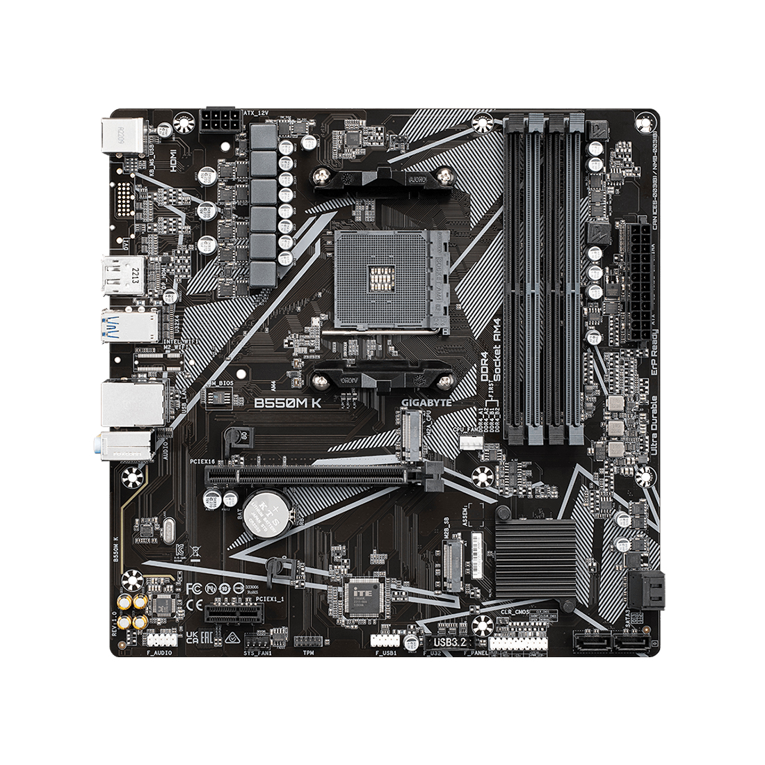 Supports AMD Ryzen™ 5000 Series/ Ryzen™ 5000 G-Series/ Ryzen™ 4000 G-Series and Ryzen™ 3000 and Ryzen™ 3000 G-Series Processors4 DIMM-разъема для DDR4-модулей ОЗУ ECC/ Non-ECC без буферизации (двухканальный режим работы)Порт PCIe 4.0 x16 Ultra Durable™Два M.2-разъема для высокоскоростных NVMe PCIe 4.0/3.0 твердотельных накопителейВысококачественные аудиоконденсаторы и антишумовой экран, превосходное качество звучанияКонтроллер GbE LAN, средства мониторинга и управления полосой пропусканияПорты DisplayPort и HDMI на задней панели (предусмотрена возможность вывода сигнала одновременно на нескольких мониторов)Фирменная функция Smart Fan 5 для контроля и управления массивом термодатчиков, гибридные разъемы для подключения вентиляторов (функция FAN STOP)Элементная база Ultra Durable, устойчивые к воздействию окислов серы резисторы