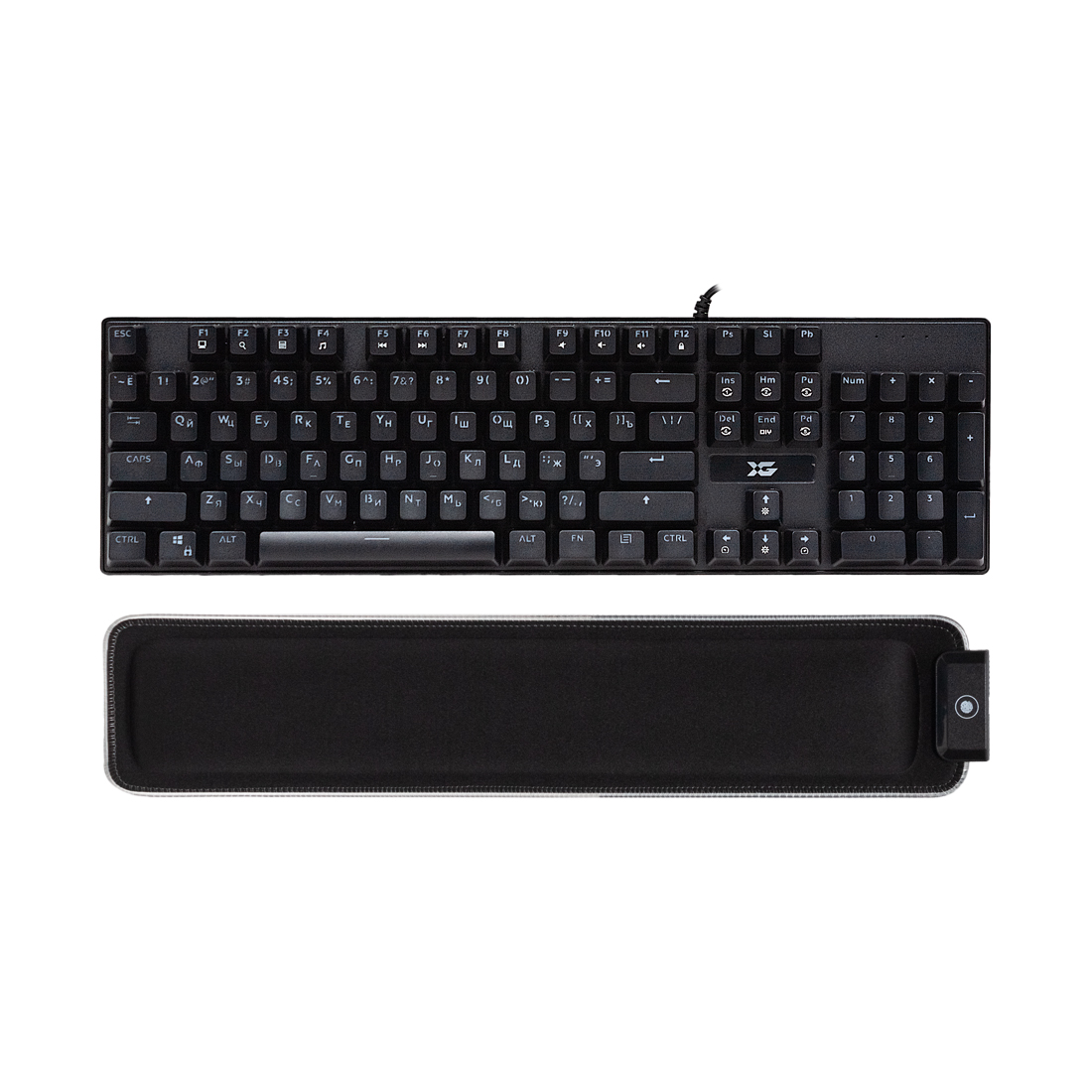 Игровая клавиатура XG Dark Shadow, сочетание современного игрового дизайна с набором мультимедийного функционала и высокими клавишами для удобного и быстрого нажатия в самых острых моментах игрового мира. Подставка под запястья, обеспечивающая дополнительный комфорт при долгой игре за компьютером и предотвращающей развития "Синдрома запястного канала". Раскладка клавиатуры, разработанная специально для среднеазиатского региона, имеет красивый и ровный шрифт, нанесена при помощи точного лазера и защищена от стирания УФ-покрытием. Имеется съемная подставка под запястье.