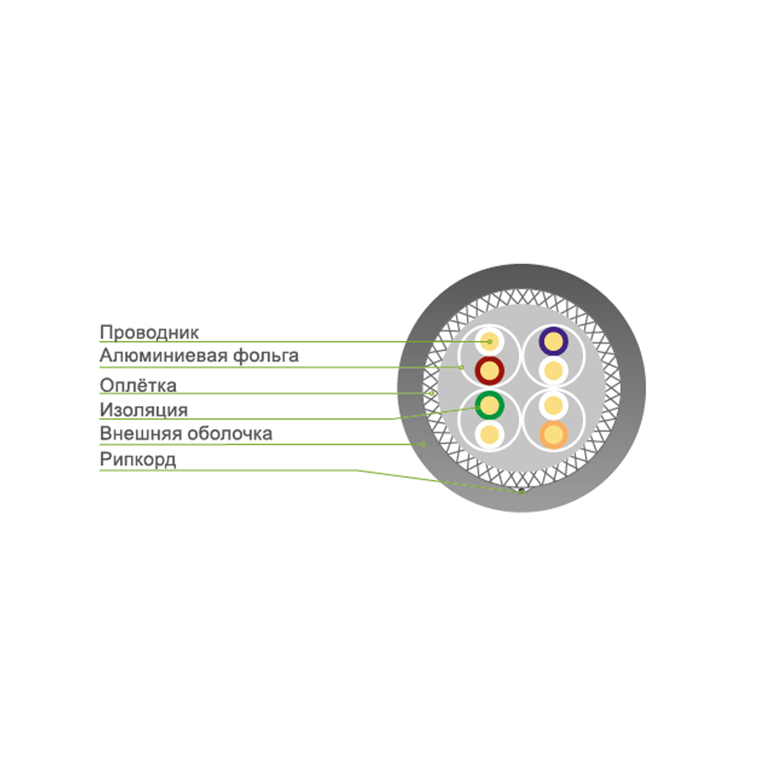 Тип кабеля Дважды экранированный (S-FTP), Solid (одножильный)
